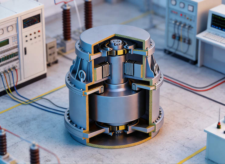 ② 保持(悬浮):飞轮在真空容器内,由磁悬浮轴承托起,在近乎零摩擦的状态下维持高速旋转状态,将动能储存起来。
